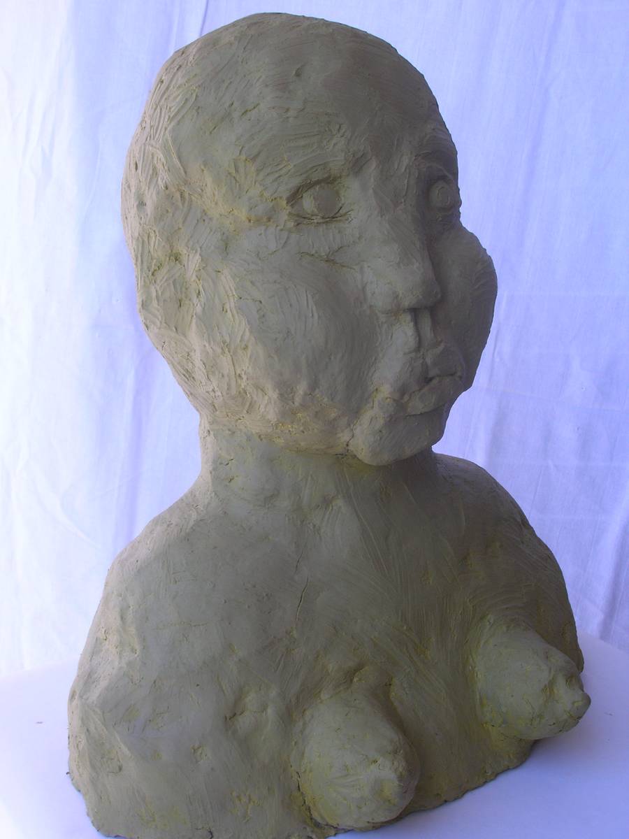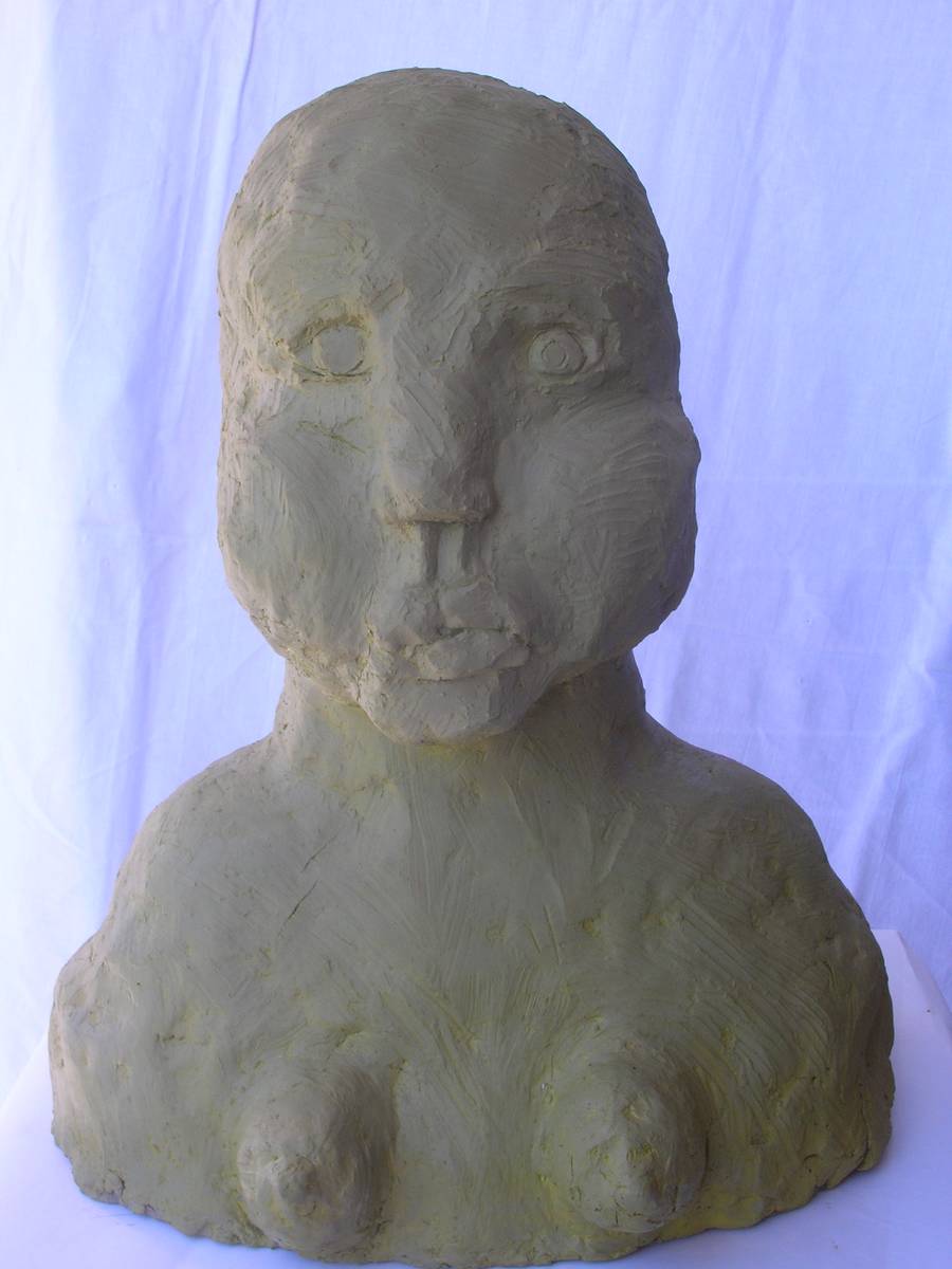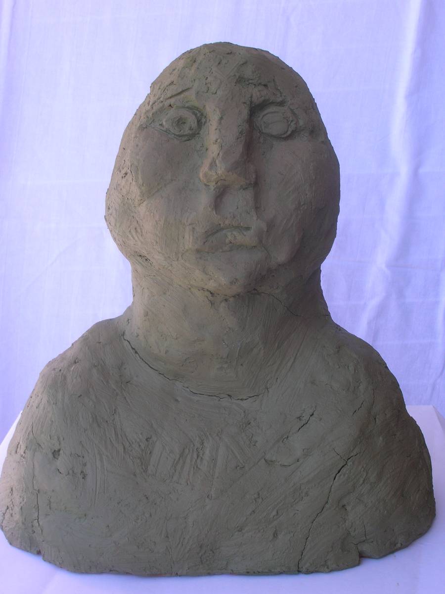 les yeux rouges (terre cuite peinte: h 28cm )