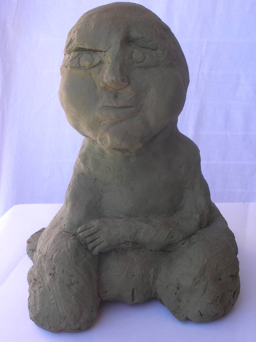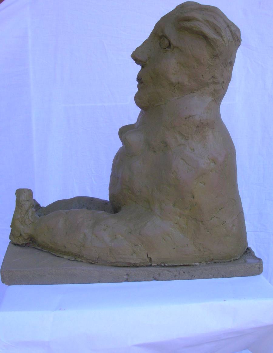 personnage reposé (terre cuite peinte:h 50cm )