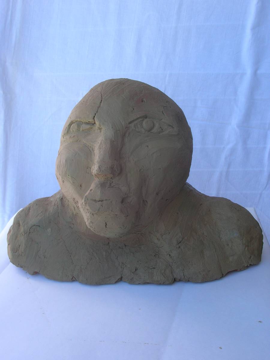 tête de passant (terre cuite peinte:h 25cm )