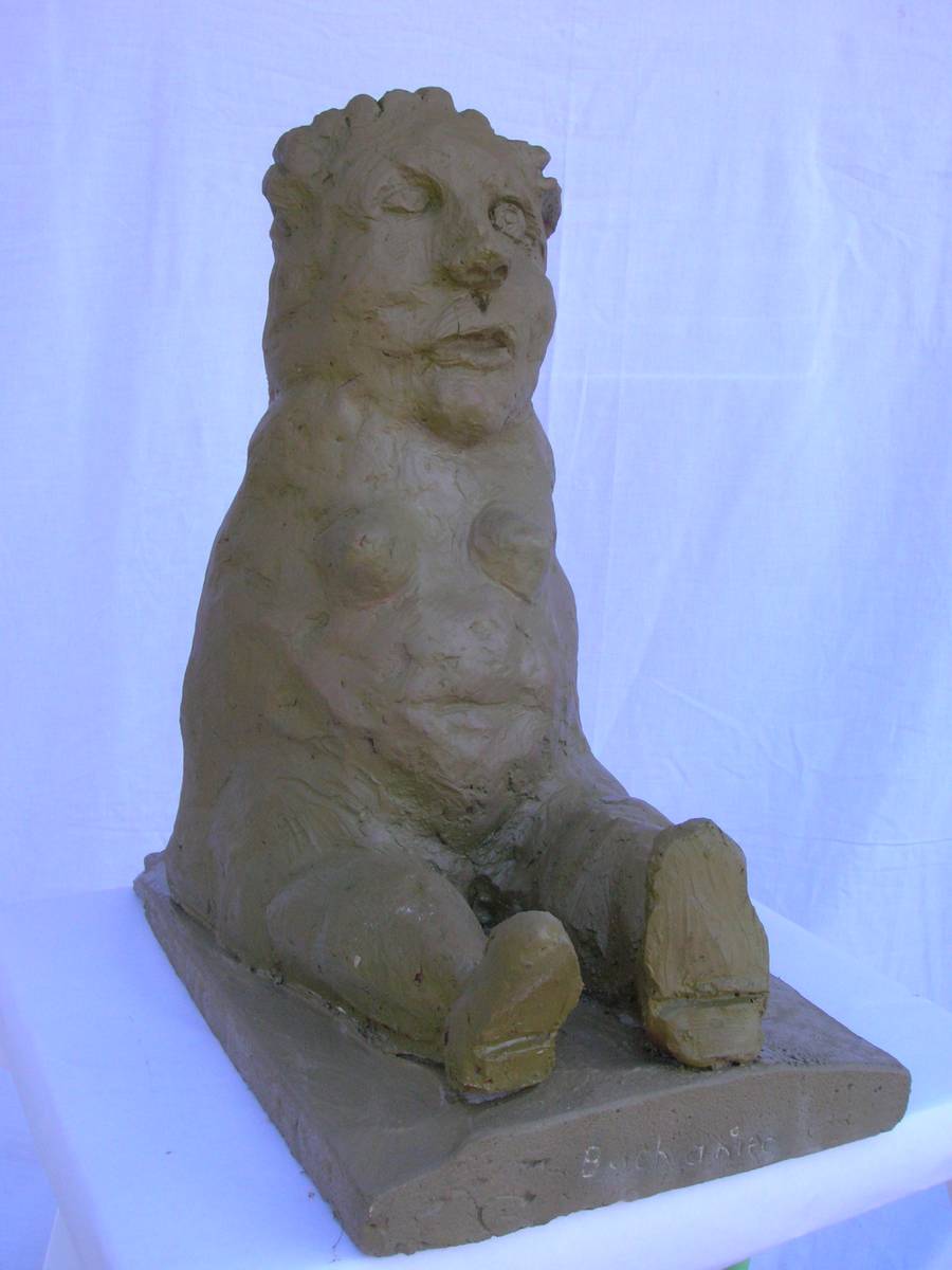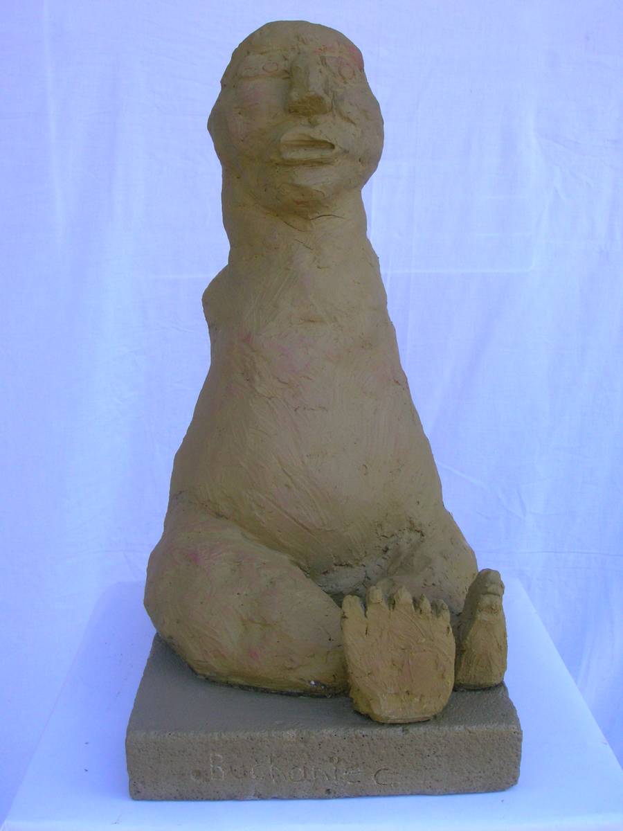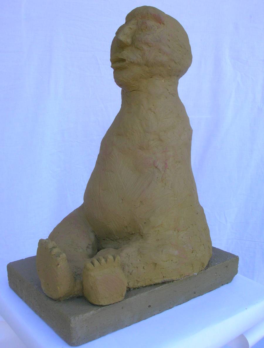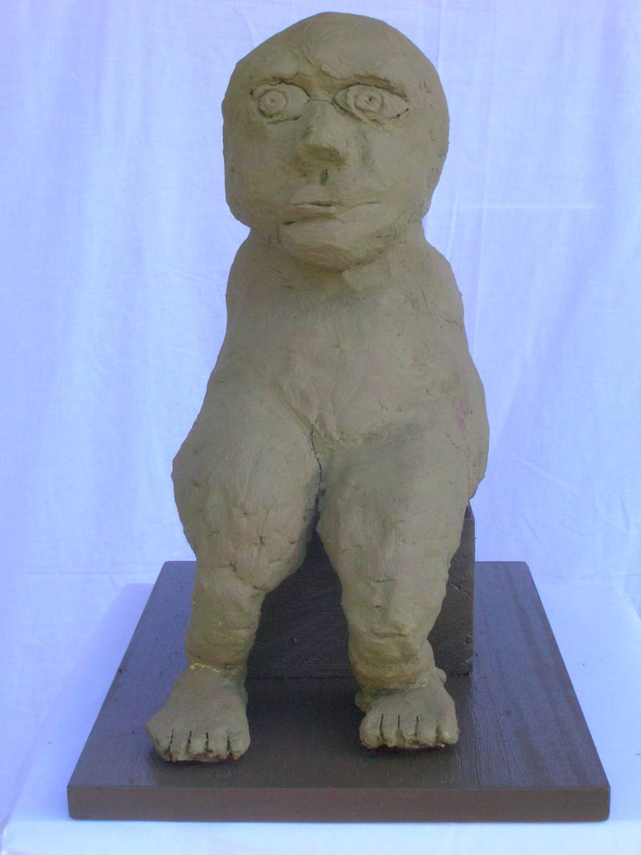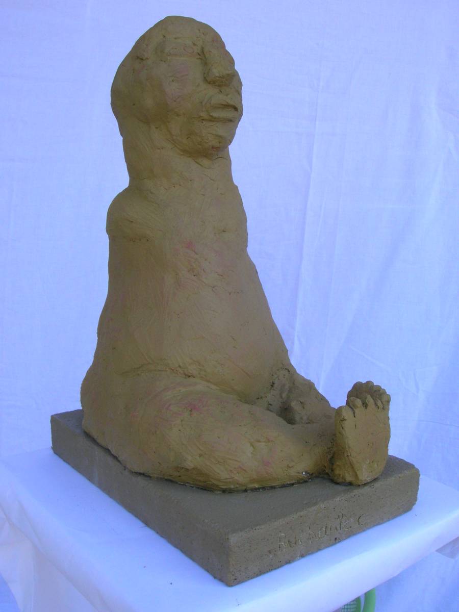 Nénette assise ( terre cuite peinte: h 42cm )